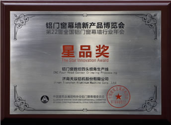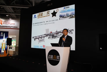 展會(huì)期間,在第二屆中國(guó)門(mén)窗幕墻年度星品評(píng)選中,天辰股份的數(shù)控四頭組角生產(chǎn)線以其填補(bǔ)國(guó)內(nèi)空白的先進(jìn)的技術(shù)及超高生產(chǎn)效率,獲得評(píng)審及專(zhuān)家的一致好評(píng),勇奪“星品獎(jiǎng)”。天辰股份市場(chǎng)部傅旺經(jīng)理在星品發(fā)布會(huì)上對(duì)該設(shè)備進(jìn)行了詳盡的技術(shù)闡述。