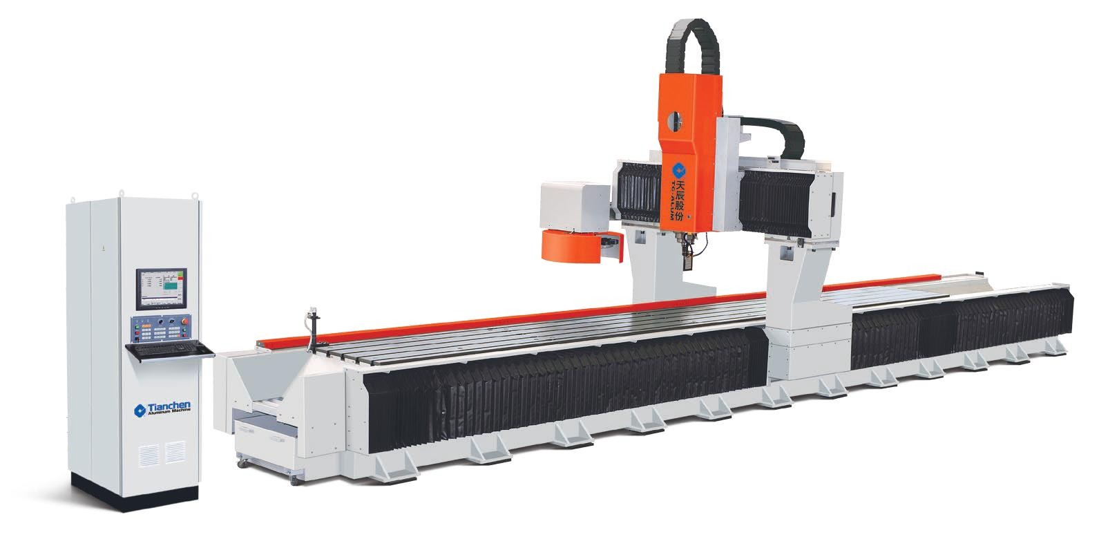 適用于軌道交通鋁型材及各種工業(yè)鋁材的孔、槽及輪廓形狀等工序的加工,具備銑削、鉆 削、鏜孔及攻螺紋等功能。